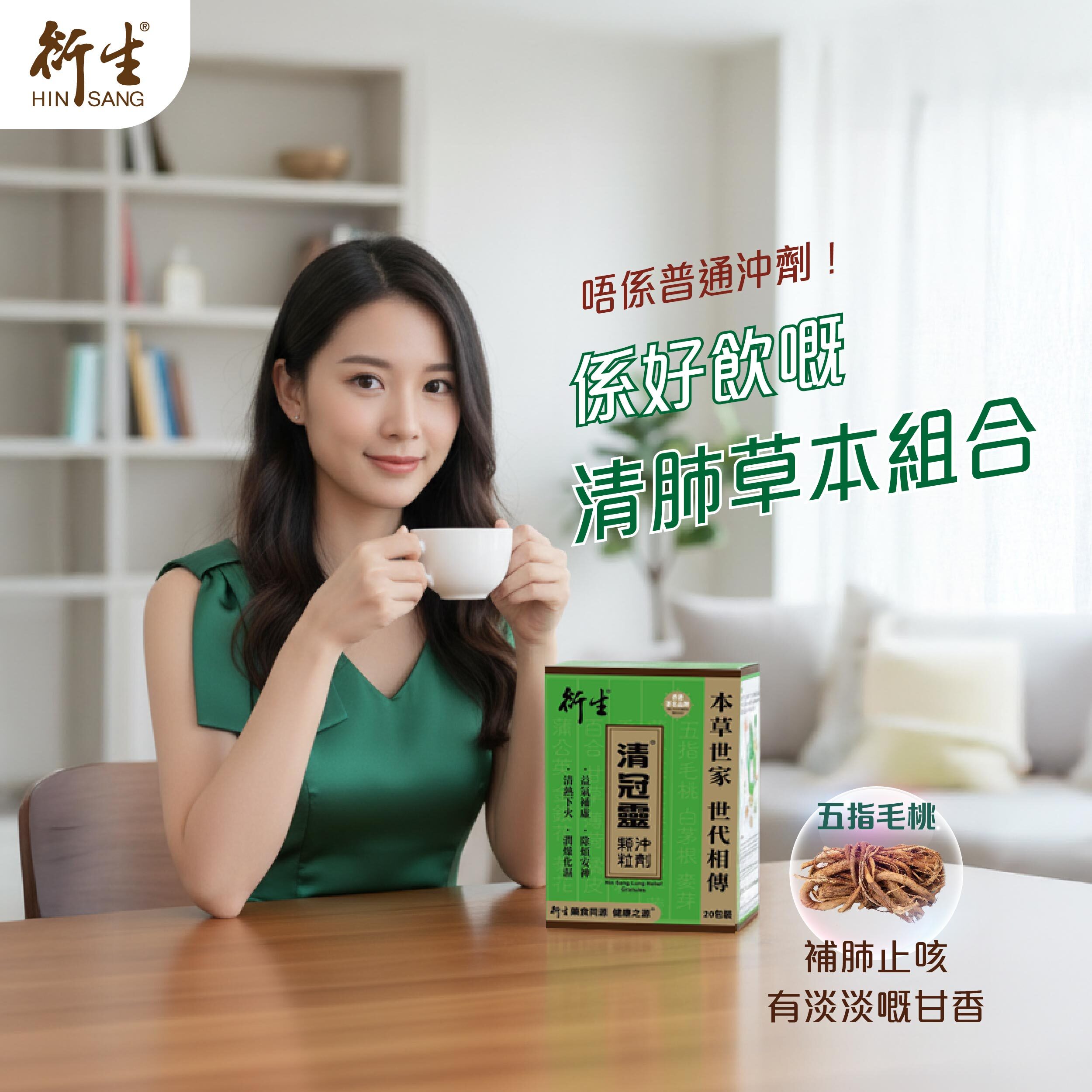 若您追求更便捷的現代化選擇,推薦衍生清冠靈顆粒沖劑,選用多種天然草本成分,包括五指毛桃、白茅根、玉竹、金銀花、菊花、百合、薄荷及蒲公英等。沖泡後湯色清澈,味道甘醇,為你帶來溫和滋潤的體驗,徹底顛覆對傳統草本飲品的印象,將天然植物的力量融入現代便捷生活。