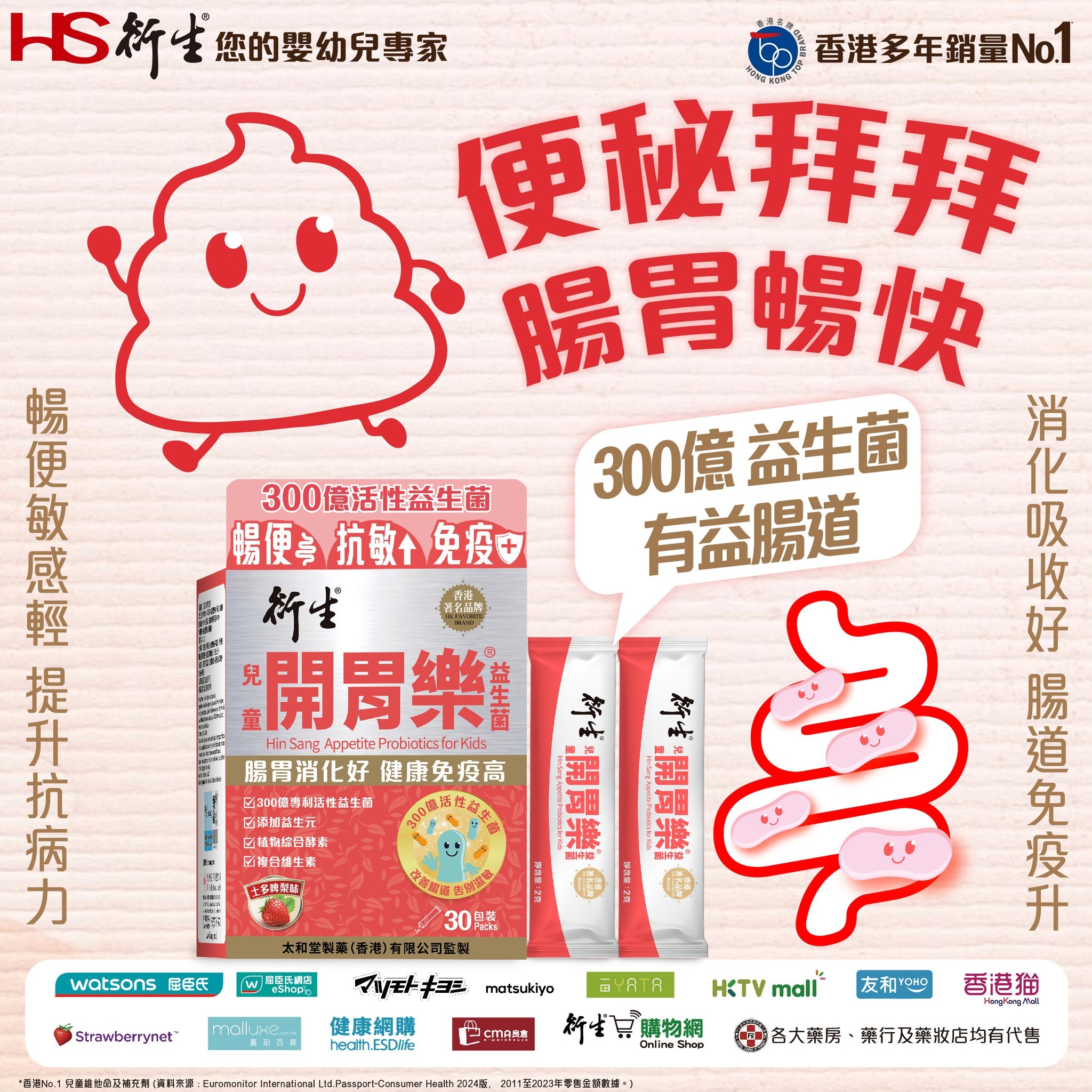衍生兒童開胃樂 ,由衍生專業團隊所研發,特別針對亞洲人而設,高達300億CFU專利活性益生菌,添加益生元、植物綜合酵素及複合維生素,幫助友建立健康腸道環境,促進腸道蠕動,改善腸道不適,解決便便煩惱問題。大人同3歲以上小朋友都食得,每日一包輕鬆解決便便煩惱,抵抗力level up!