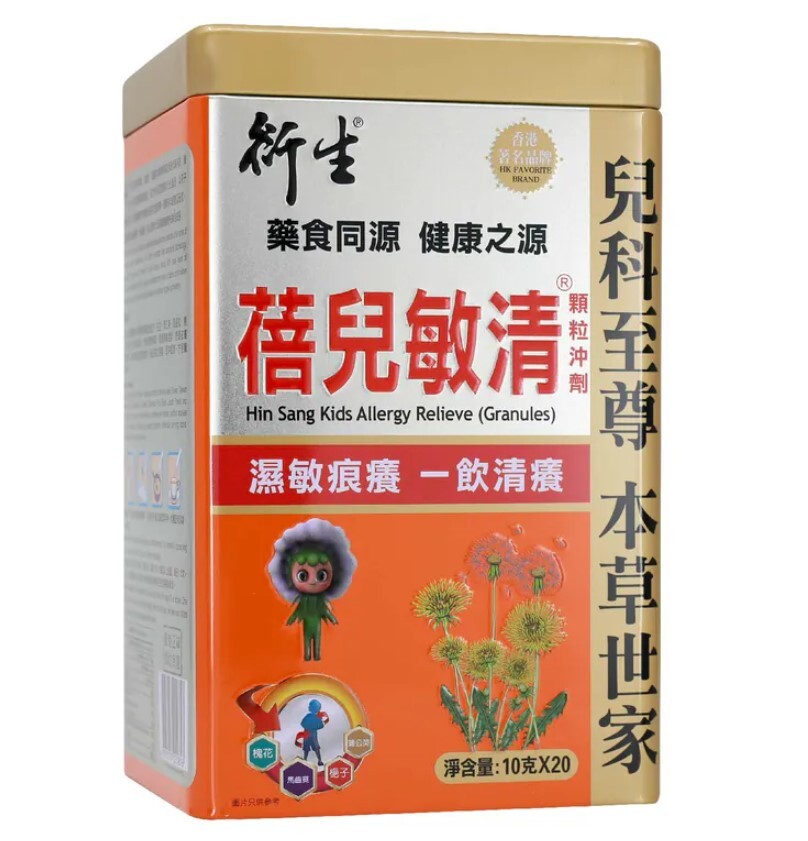 孩子過敏不是小題大做,需要家長細心關注,家中可以備上一盒衍生蓓兒敏清,衍生蓓兒敏清顆粒沖劑,內含金銀花、白芷、蒲公英、馬齒莧、梔子、槐花等天然草本成分,有助紓緩濕敏及皮膚紅熱痕癢問題,改善脫皮。絕不含蔗糖,能有效保護牙齒,不易惹痰,每日飲用不會造成任何負擔。