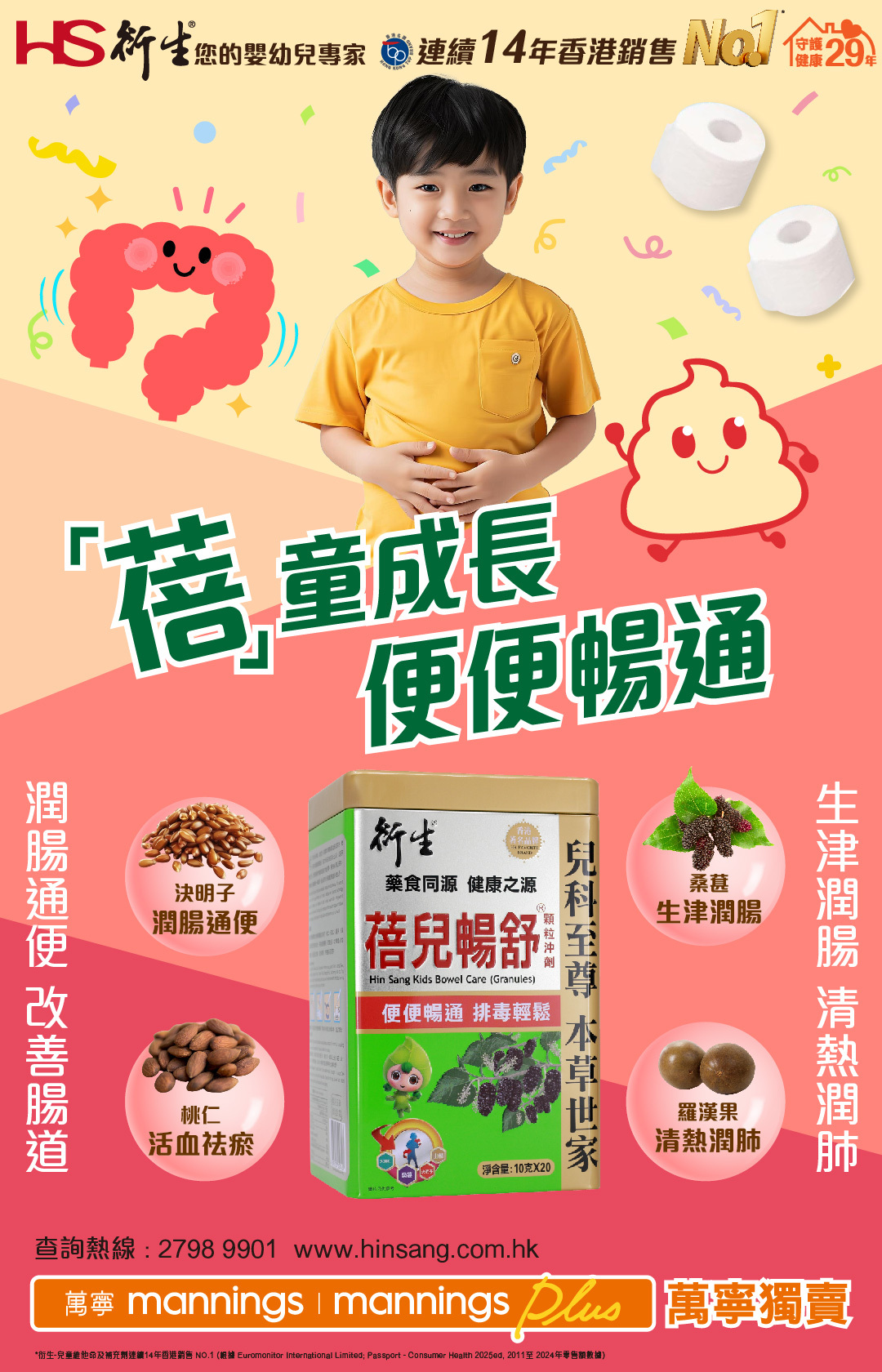 衍生蓓兒暢舒顆粒沖劑,精選優質決明子、桃仁、郁李仁、羅漢果、火麻仁、桑葚等天然草本成分,有助便便暢通,改善腹瀉;促進腸道内有益菌的增值。