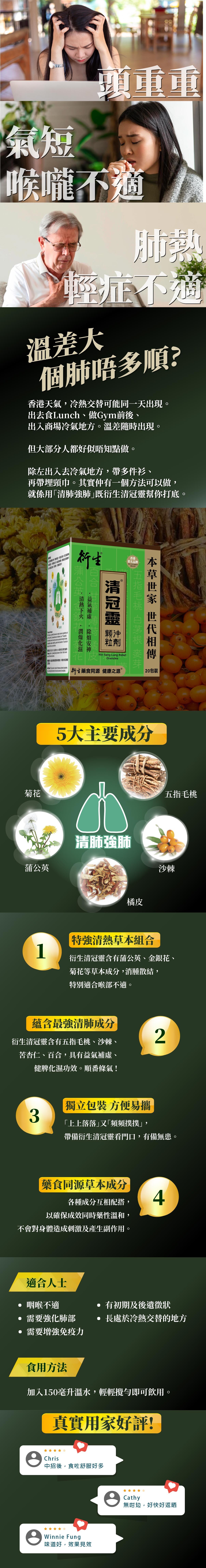 ✔ 特強清肺草本組合 五指毛桃、沙棘、苦杏仁、百合具有益氣補虛、健脾化濕功效。咳嗽有痰時服用可舒緩不適!