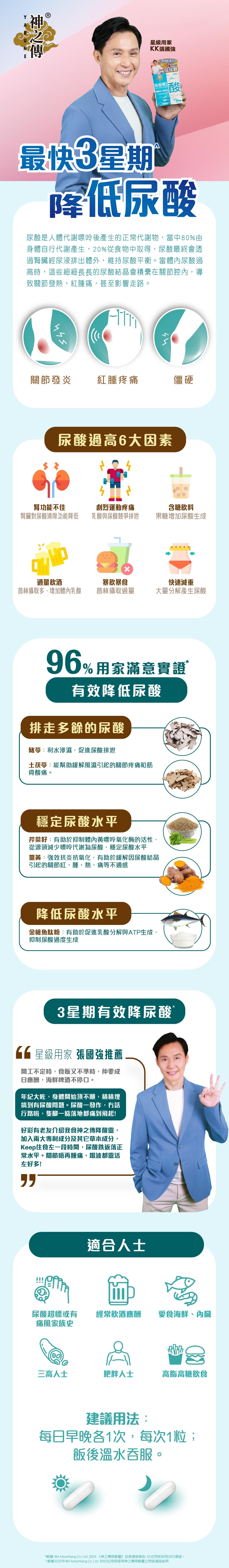 神之傳降酸靈膠囊採用天然中草本成分,可促進尿酸排出和穩定尿酸水平,有助於緩解因尿酸過多引起的關節僵硬不適,減輕關節腫痛,同時有助於保護腎臟功能,讓您重拾舒適與健康。